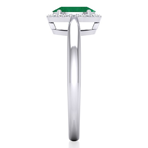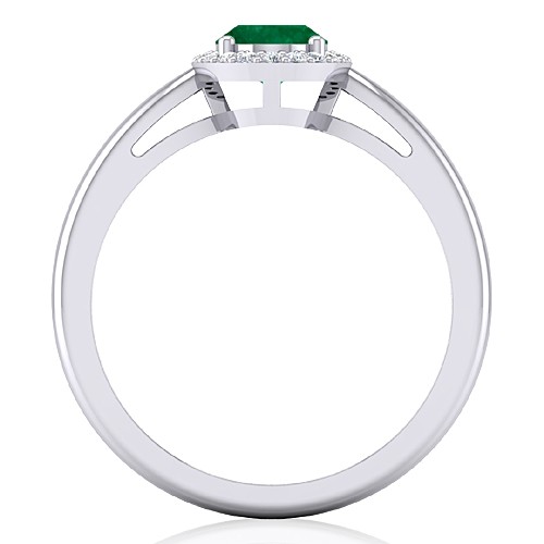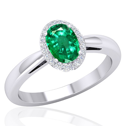 14K White Gold Oval Cut 7.5 x 5.5 mm Emerald Gemstone With 0.15 cts Diamond Cocktail Vintage Engagement Women Wedding Designer Fine Jewelry Ring