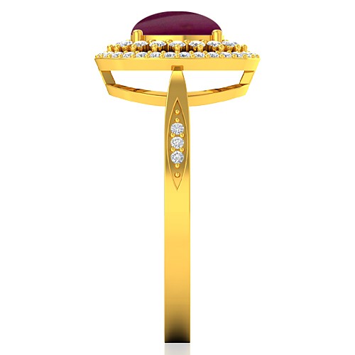 18K Yellow Gold 1.52 cts Oval Cab Ruby Stone Diamond Engagement Women Ring