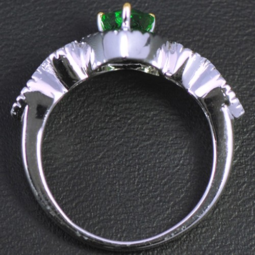14k Pure White Gold Natural 1.16 cts Tsavorite Garnet + Diamond Designer Ring
