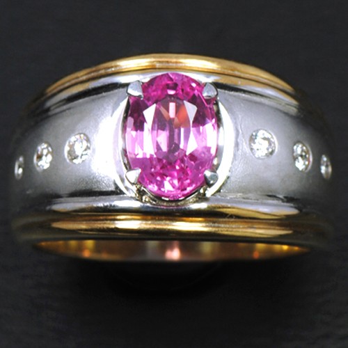 14k Pure White & Yellow Gold With Beautiful Natural Top Pink Sapphire Loose Gemstone Diamond Wedding Cocktail Designer Ladies Fine Jewelry Ring