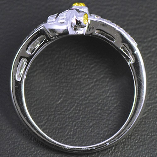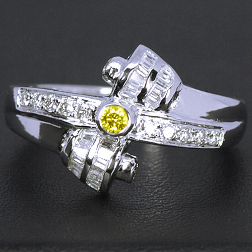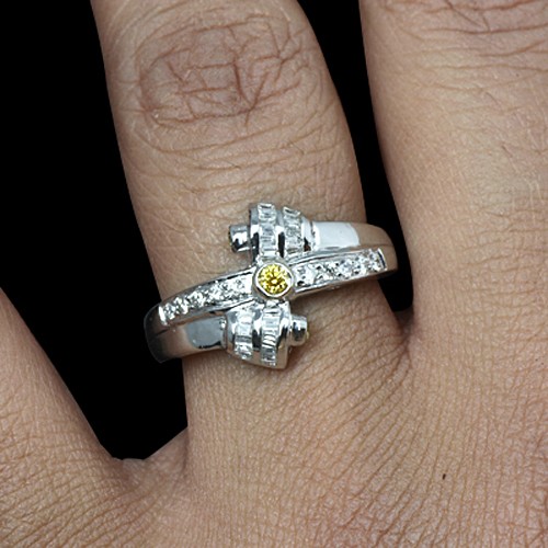 14k Pure White Gold With Beautiful Natural 0.11 ct Yellow 0.33 cts White Diamond Vintage Wedding Cocktail Designer Ladies Fine Jewelry Ring