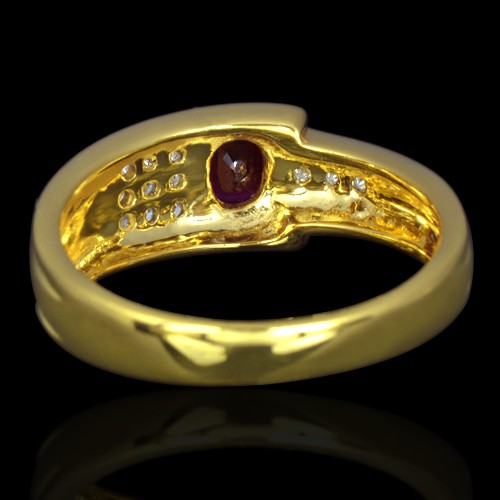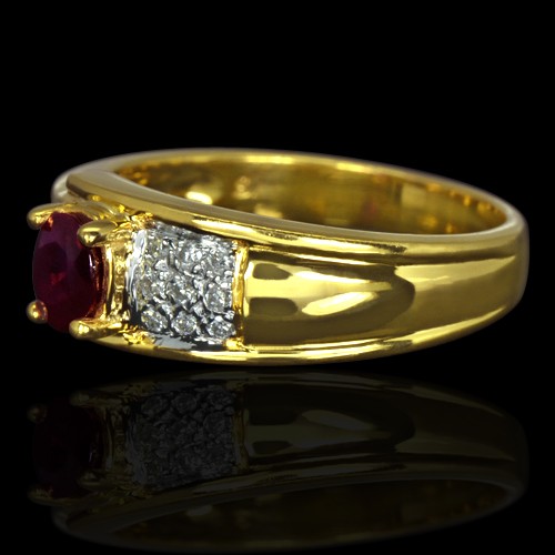 9K Yellow Gold Natural 0.40 Carat Deep Red Ruby Diamond Ladies Cocktail Ring