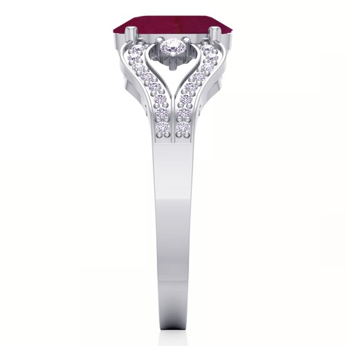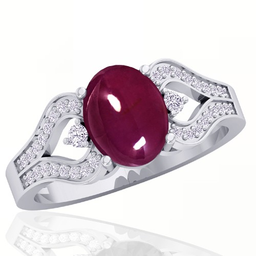 14k White Gold 3.05 cts Oval 9x7 mm Ruby Unheated Gemstone With 0.23 cts Diamond Cocktail Vintage Engagement Women Wedding Designer Fine Jewelry Ring