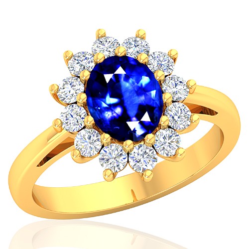 18K Yellow Gold 1.62 cts Blue Sapphire Stone Diamond Cocktail Engagement Women